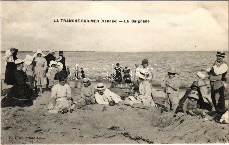 Leírás: La Tranche-sur-Mer, La Baignade / beach, bathers (crease)