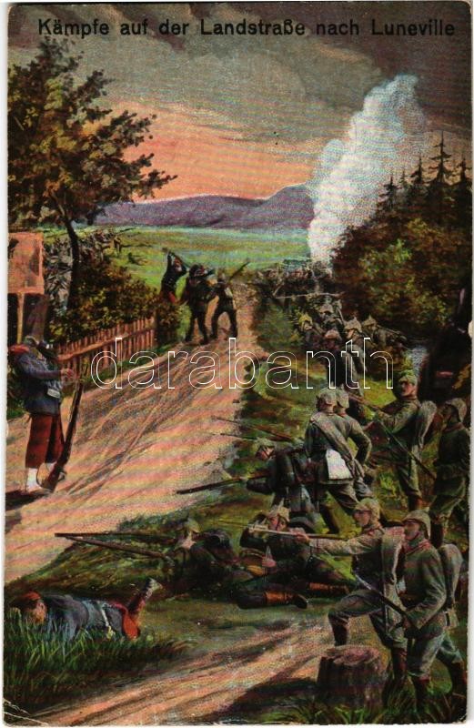 1915 Kämpfe auf der Landstrasse nach Luneville / WWI German military, French attack. M. B. L. 1450. + "KAIS. u. KÖNIGL. INFANTERIEREGIMENT RITTER VON AUFFENBERG No. 64." (EK)