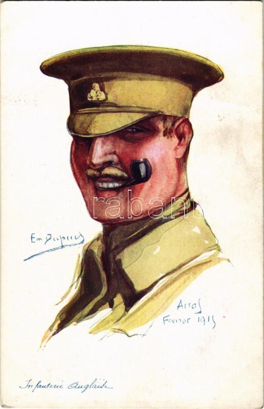 Leírás: Infanterie anglaise / WWI French military art postcard, English infantryman. Visé Paris No. 9. s: Em. Dupuis (fl)