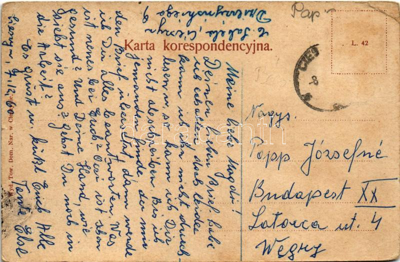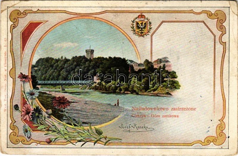 Leírás: Cieszyn, Teschen; Góra zamkowa / castle, bridge. Art Nouveau, floral, coat of arms s: Józef Raszka (EK)