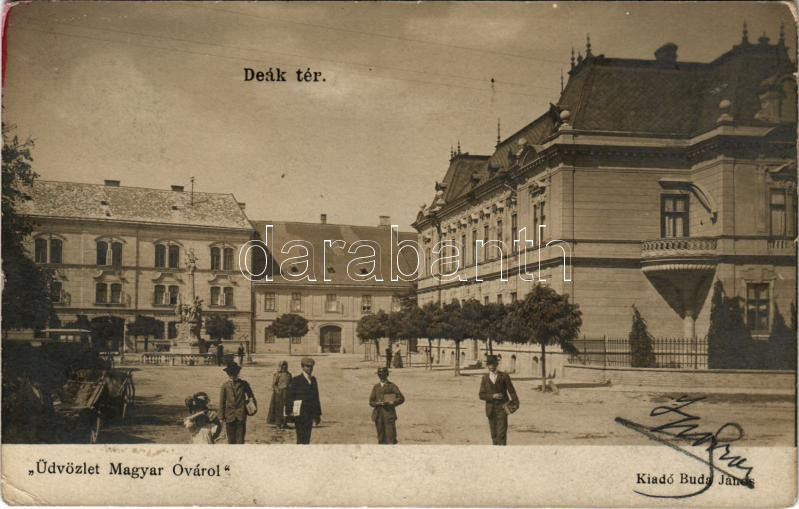 Leírás: 1911 Magyaróvár, Mosonmagyaróvár; Deák tér, Takarékpénztár bérháza, Fekete Sas vendéglő. Buda János kiadása (EK)