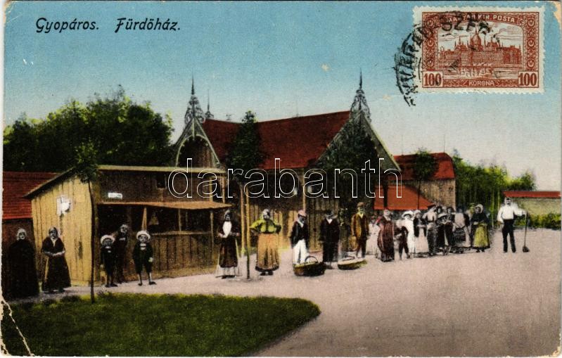 1923 Gyopáros-fürdő (Orosháza), fürdőház. Tomay kiadása. TCV card (fa) https://www.darabanth.com/hu/498-Gyorsarveres/498.0/Kepeslapok/Magyarorszag~3000005/1923-Gyoparos-furdo-Oroshaza-furdohaz-Tomay-kiadasa-TCV-card-fa~II2467099