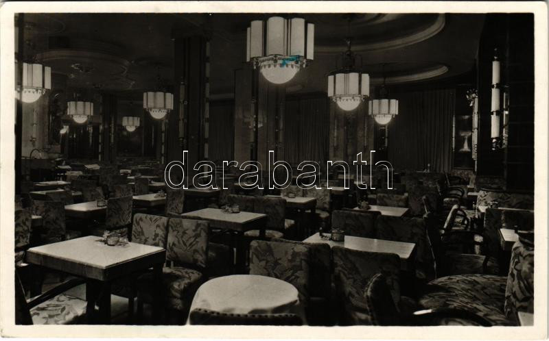 Leírás: 1943 Budapest VII. Emke kávéház és étterem, belső. Erzsébet körút 2.