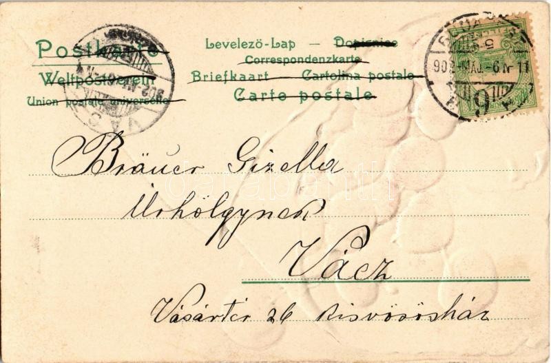 Leírás: 1902 Cherries in newspaper. Serie Düten 1257. Emb. litho