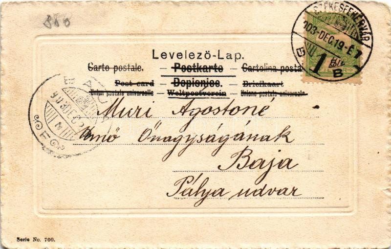 Leírás: 1903 Tájkép / landscape art postcard. Serie No. 700. Emb. frame (kis szakadás / small tear)