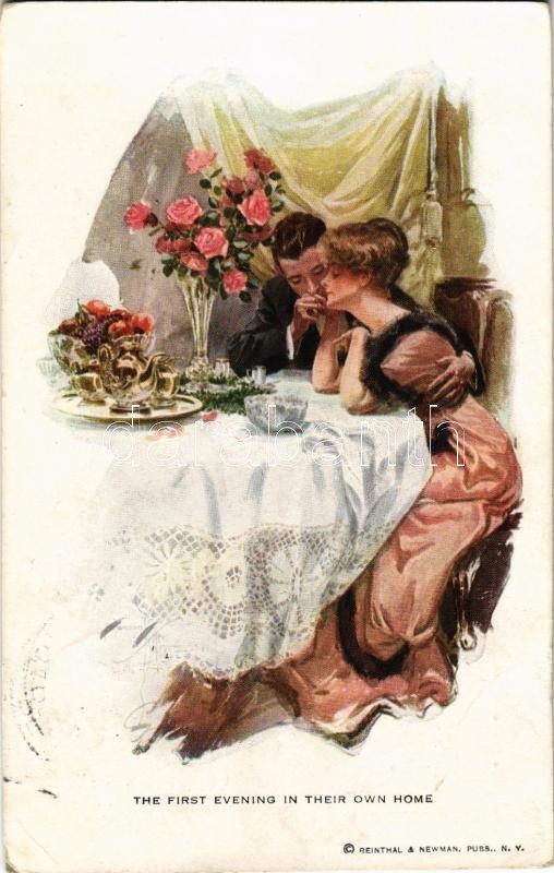 1912 The First Evening In Their Own Home. Romantic couple. Reinthal &a... https://www.darabanth.com/hu/498-Gyorsarveres/498.0/Kepeslapok/Muveszlapok~3000075/1912-The-First-Evening-In-Their-Own-Home-Romantic-couple-Reinthal-Newman-No-190-s-Harrison-F~II2160771