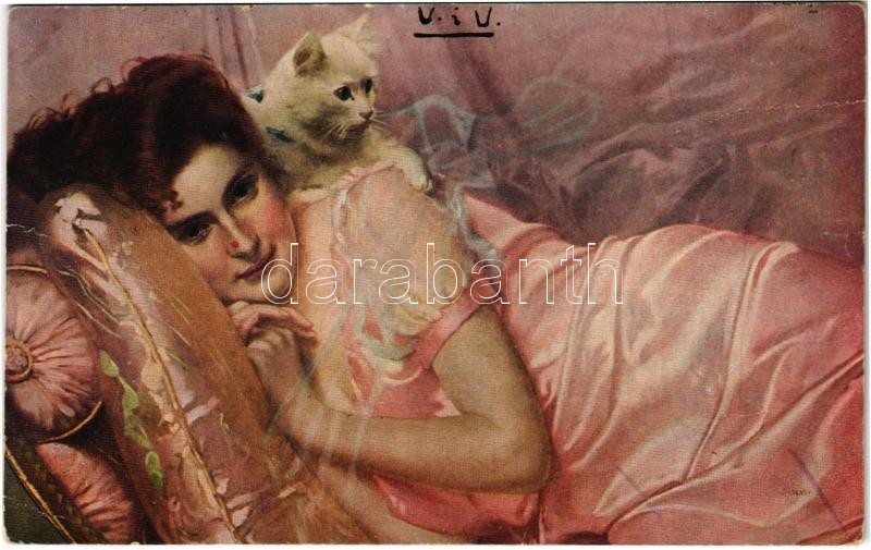 1917 Zwei Verräterinnen / Lady with cat. Salon J. P. P. 2120. s: V. Co... https://www.darabanth.com/hu/498-Gyorsarveres/498.0/Kepeslapok/Muveszlapok~3000075/1917-Zwei-Verraterinnen-Lady-with-cat-Salon-J-P-P-2120-s-V-Corcos-crease~II2160628