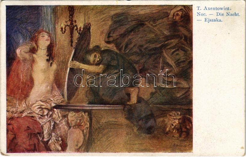 Leírás: 1918 Die Nacht / Noc / The Night. Lady with mirror, slightly erotic art postcard. A.F.W. VII. Nr. 585. s: T. Axentowicz (crease)