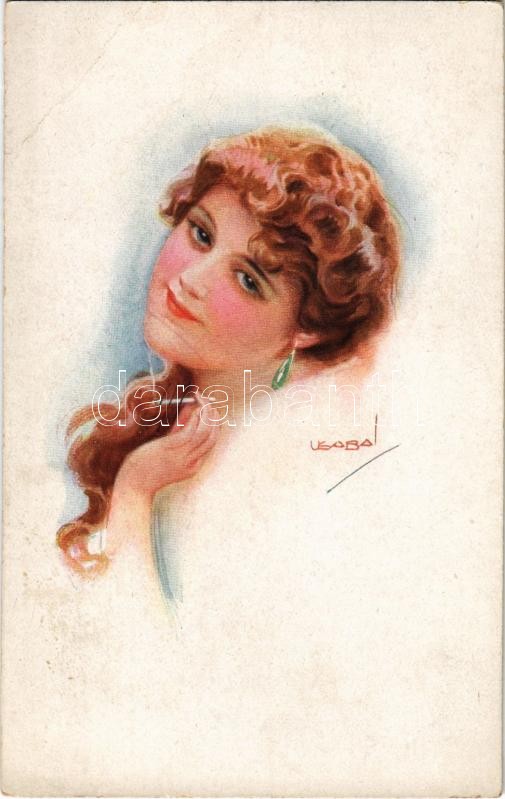 Leírás: 1919 Lady smoking a cigarette. Italian art postcard. "ERKAL" No. 303/1. s: Usabal (EB)
