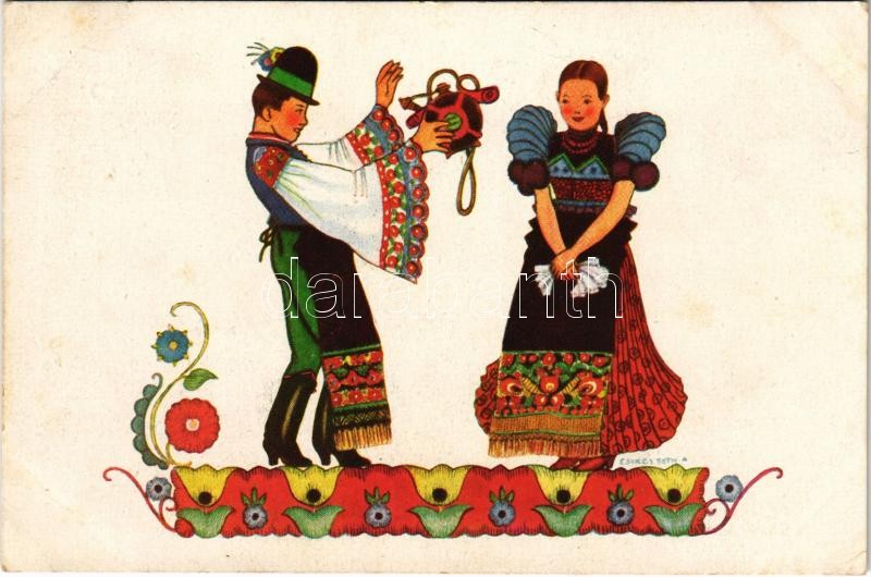 Leírás: 1935 Magyar folklór művészlap / Hungarian folklore art postcard s: Csikós Tóth András (EK)