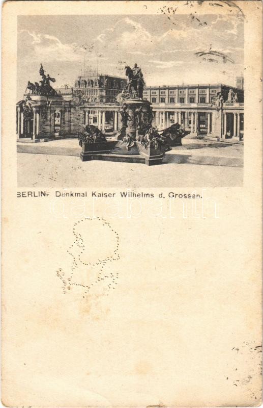 1923 Berlin, Denkmal Kaiser Wilhelms d. Grossen / monument (pinholes) https://www.darabanth.com/hu/498-Gyorsarveres/498.0/Kepeslapok/Nemetorszag~3000096/1923-Berlin-Denkmal-Kaiser-Wilhelms-d-Grossen-monument-pinholes~II2325958