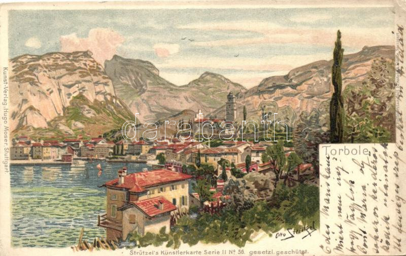 Leírás: Torbole, Strützel's Künstlerkarte Serie II. No. 56. litho s: Otto Strützel (small tear)