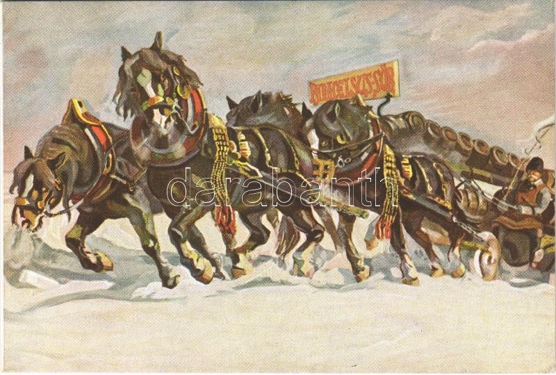 Leírás: Első Magyar Részvény-Serfőzde, Paracelsus sör reklámja / Hungarian brewery and beer advertising art postcard