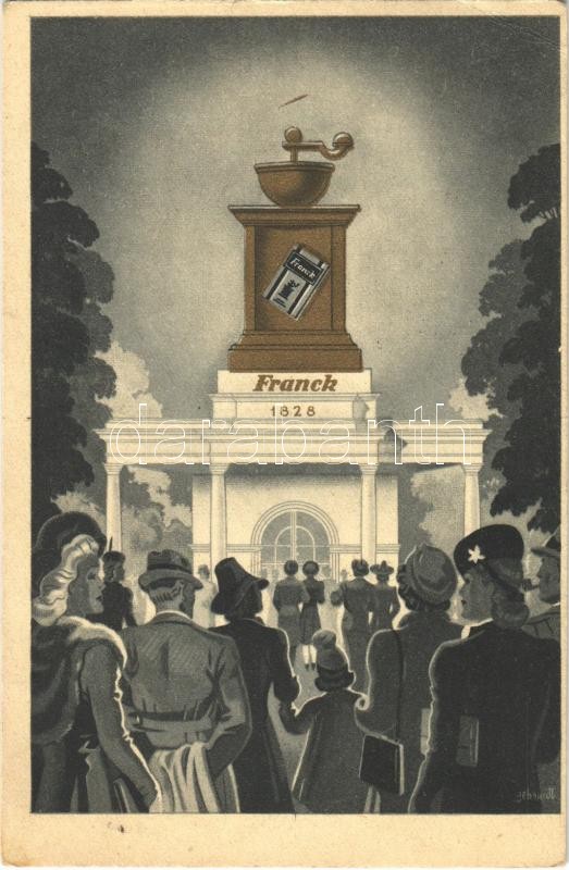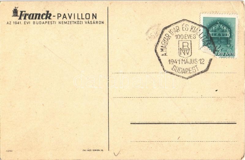 Franck kávé pavilonja az 1941. évi Budapesti Nemzetközi Vásáron / Hungarian coffee advertising art postcard s: Gebhardt + "100 éves a Magyar Ipar és Kiállításügy BNV 1941. május 12. Budapest" So. Stpl. (EK)