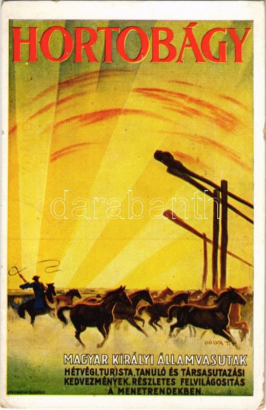 Hortobágy. A Magyar Királyi Államvasutak turisztikai reklám képeslap /... https://www.darabanth.com/hu/498-Gyorsarveres/498.0/Kepeslapok/Reklam~3000086/Hortobagy-A-Magyar-Kiralyi-Allamvasutak-turisztikai-reklam-kepeslap-Hungarian-State-Railways~II2161476
