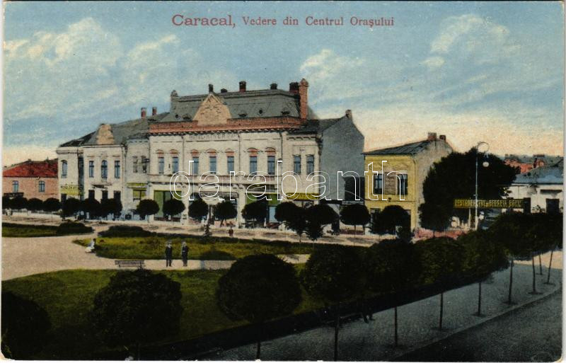 Leírás: Caracal, Vedere din Centrul Orasului, Restaurantul si beraria Böhm / street view, Hotel Minerva, restaurant and beer hall, shop of D. Ionescu