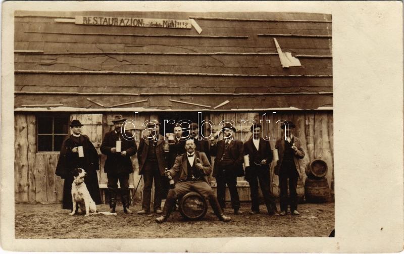 Restaurazion zum deutsche Michl / German inn and restaurant, men drink... https://www.darabanth.com/hu/498-Gyorsarveres/498.0/Kepeslapok/Sor-alkohol-cigaretta~3000090/Restaurazion-zum-deutsche-Michl-German-inn-and-restaurant-men-drinking-and-smoking-outside-photo~II2178434