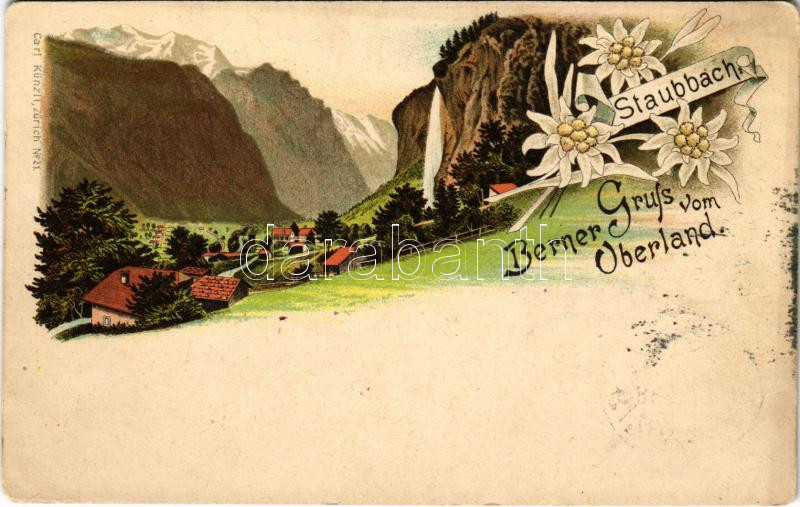 1900 Berner Oberland, Bernese Highlands; Staubbach waterfall. Carl Kün... https://www.darabanth.com/hu/498-Gyorsarveres/498.0/Kepeslapok/Svajc~3000112/1900-Berner-Oberland-Bernese-Highlands-Staubbach-waterfall-Carl-Kunzli-Art-Nouveau-floral-lith~II3152263