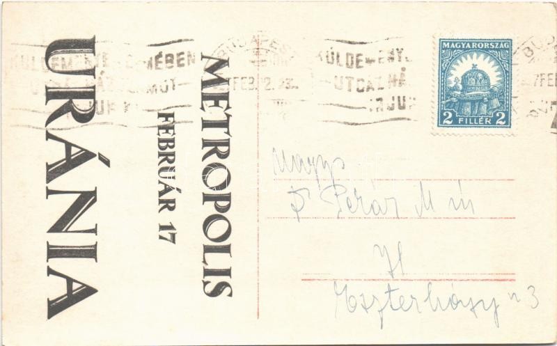 1927 Jelenet Fritz Lang "Metropolis" című filmjéből. A hátol... https://www.darabanth.com/hu/498-Gyorsarveres/498.0/Kepeslapok/Szinesz~3000097/1927-Jelenet-Fritz-Lang-Metropolis-cimu-filmjebol-A-hatoldalon-Urania-reklam-a-vetites-n~II2333466