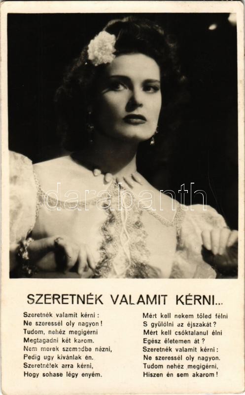 "Szeretnék valamit kérni..." Karády Katalin dala a "Hal... https://www.darabanth.com/hu/498-Gyorsarveres/498.0/Kepeslapok/Szinesz~3000097/Szeretnek-valamit-kerni-Karady-Katalin-dala-a-Halalos-csok-cimu-Hausz-Maria-filmben-~II2174939