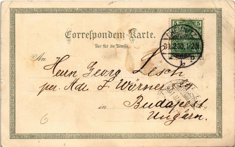 1900 Herzlichen Glückwunsch zum Neuen Jahre! Neues Jahr - Altes Jahr / New Year greeting card, old year, humour. Ottmar Zieher, München 1. Art Nouveau, litho (EB)