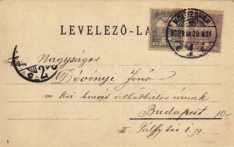 Leírás: 1902 Easter greeting art postcard, lady with sheep (fl)
