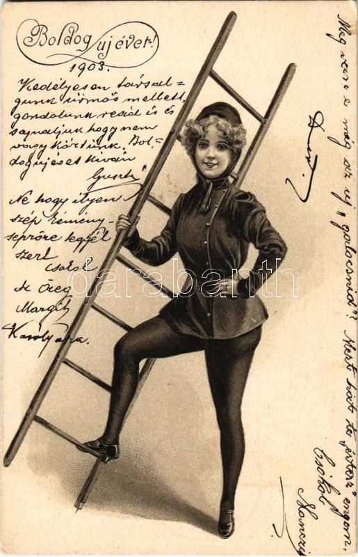 1903 Boldog Újévet! / New Year greeting art postcard, chimney sweeper ... https://www.darabanth.com/hu/498-Gyorsarveres/498.0/Kepeslapok/Udvozlolapok-Unnepek~3000106/1903-Boldog-Ujevet-New-Year-greeting-art-postcard-chimney-sweeper-girl-EAW-834-litho~II2160571