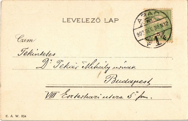 Leírás: 1903 Boldog Újévet! / New Year greeting art postcard, chimney sweeper girl. E.A.W. 834. litho