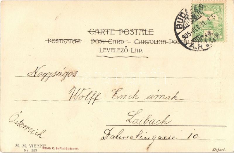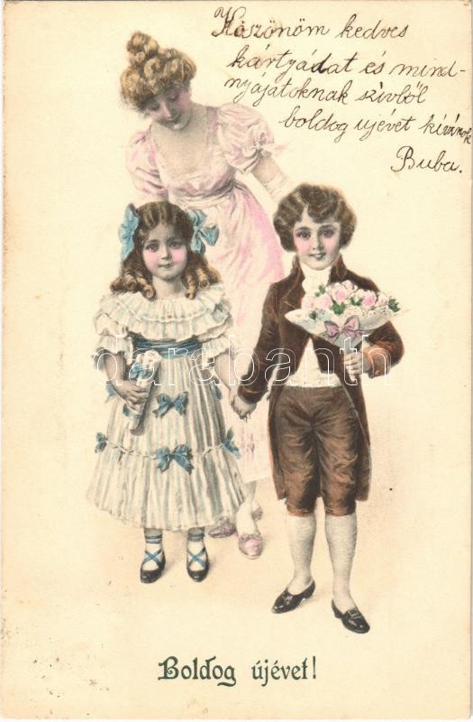 1905 Boldog Újévet! / New Year greeting art postcard, children. M. Mun... https://www.darabanth.com/hu/498-Gyorsarveres/498.0/Kepeslapok/Udvozlolapok-Unnepek~3000106/1905-Boldog-Ujevet-New-Year-greeting-art-postcard-children-M-Munk-Vienne-Nr-159~II2324201