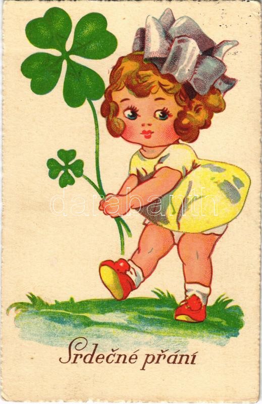 1935 Srdecné prání / Czechoslovakian greeting card, girl with clover (... https://www.darabanth.com/hu/498-Gyorsarveres/498.0/Kepeslapok/Udvozlolapok-Unnepek~3000106/1935-Srdecne-prani-Czechoslovakian-greeting-card-girl-with-clover-EK~II2161562