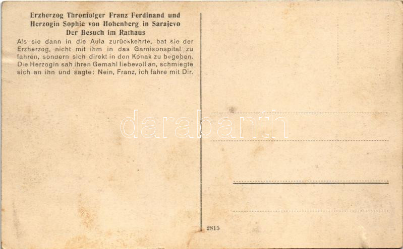 Erzherzog Thronfolger Franz Ferdinand und Herzogin Sophie von Hohenberg in Sarajevo. Der Besuch im Rathaus / minutes before the assassination of Archduke Franz Ferdinand of Austria and his wife Sophie in 1914 (the trigger to WWI) (szakadás / tear)