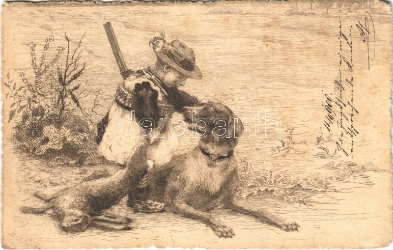 1900 Hunter boy with hunting dog and prey (fl) https://www.darabanth.com/hu/498-Gyorsarveres/498.0/Kepeslapok/Vadasz~3000109/1900-Hunter-boy-with-hunting-dog-and-prey-fl~II2336344