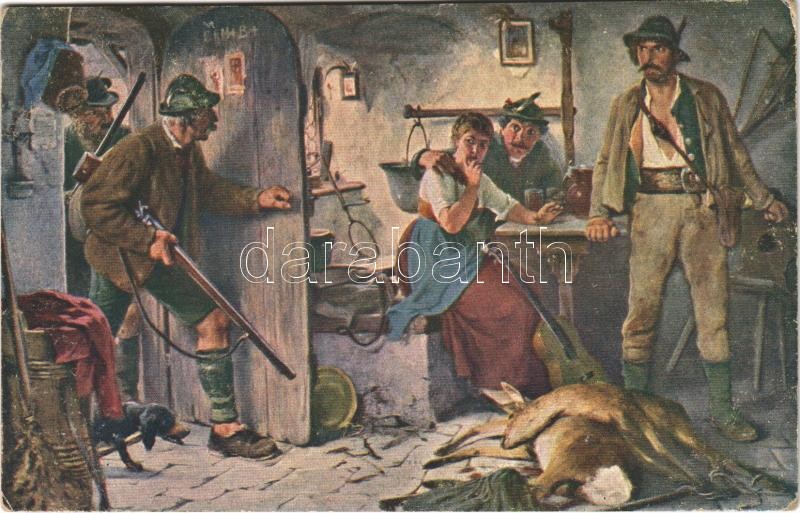 Überraschte Wilderer / Hunter art postcard s: H. Kaufmann https://www.darabanth.com/hu/498-Gyorsarveres/498.0/Kepeslapok/Vadasz~3000109/Uberraschte-Wilderer-Hunter-art-postcard-s-H-Kaufmann~II2326011