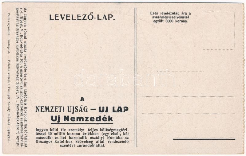 Leírás: 1925 Szent Év, Jézus a kereszten. Hátoldalon "Új Nemzedék" hetilap reklámja / Jesus Christ on the Cross. Anno Santo 1925, Jubilee s: Tábor