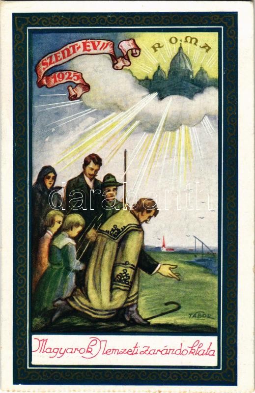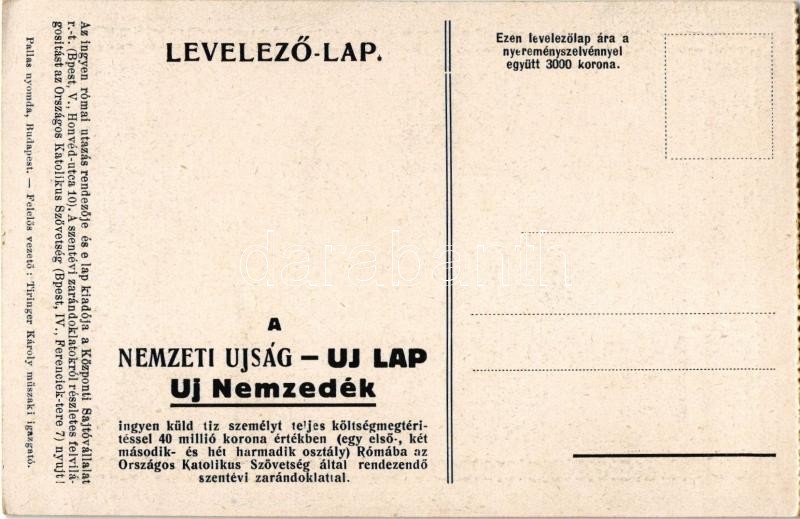 1925 Szent Év Magyarok Nemzeti zarándoklata Rómába. A Nemzeti Újság ingyenes római utazás nyereményjátéka / Hungarian National Pilgrimage to Rome. trip prize advertisement on the backside s: Tábor