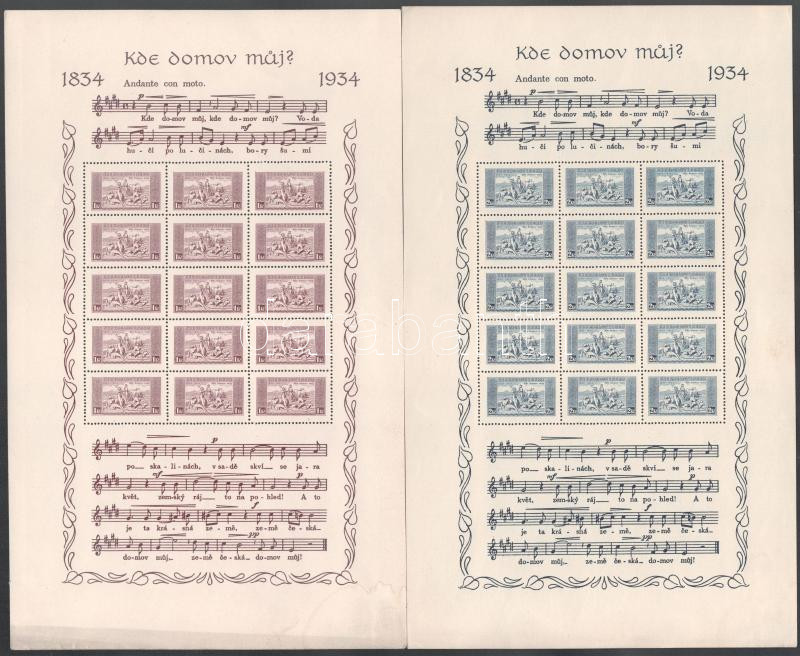 Csehszlovákia 1934 100 éves a cseh nemzeti Himnusz teljes ív sor kottával Mi 330-331 eredeti tokban! (Mi EUR 770.-++) (falc, sarok törés, folt, a tok elszíneződött / hinged, folded corner)