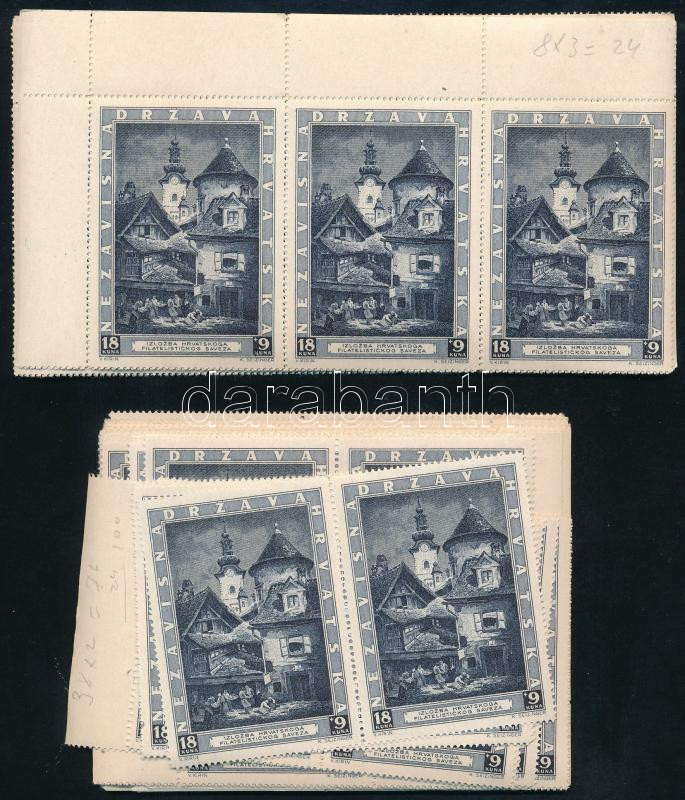 Leírás: Horvátország 1943 Bélyegkiállítás 100 db bélyeg összefüggésekben Mi 115 (Mi EUR 700,-)