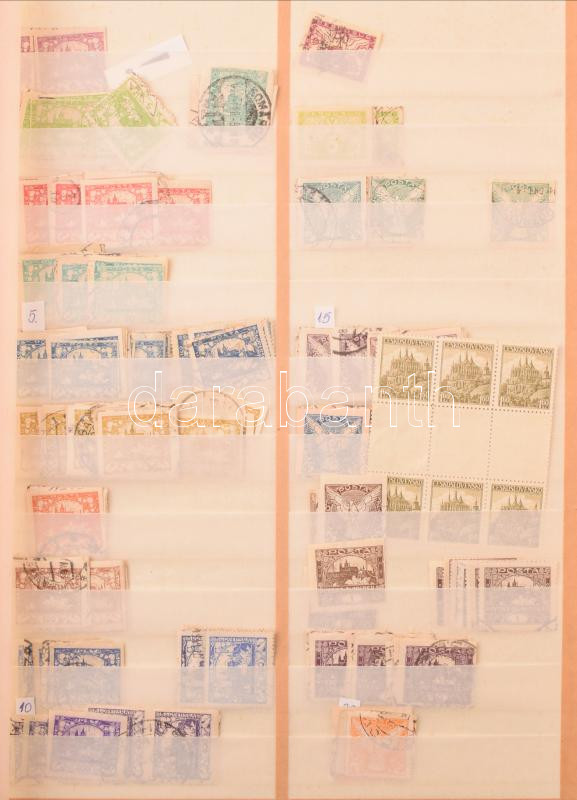 Leírás: Csehszlovákia régi átnézetlen sok példányos előrendező / tízes rendező 1919-1940 rendező berakóban, több ezer bélyeg