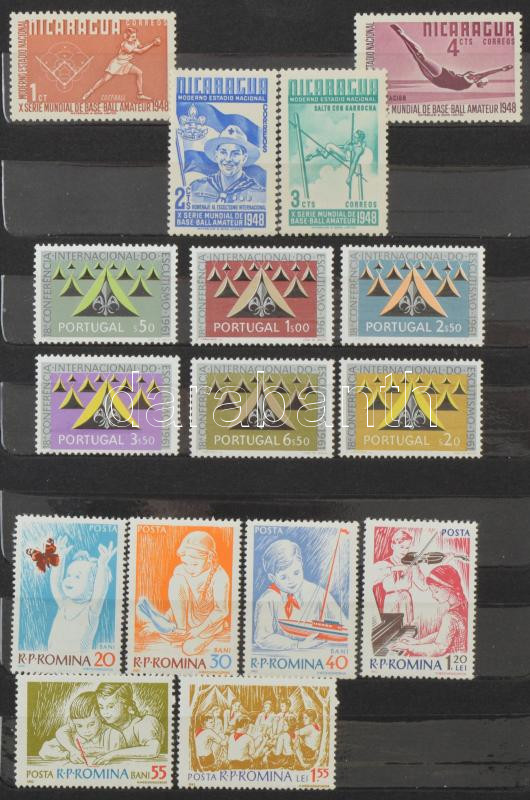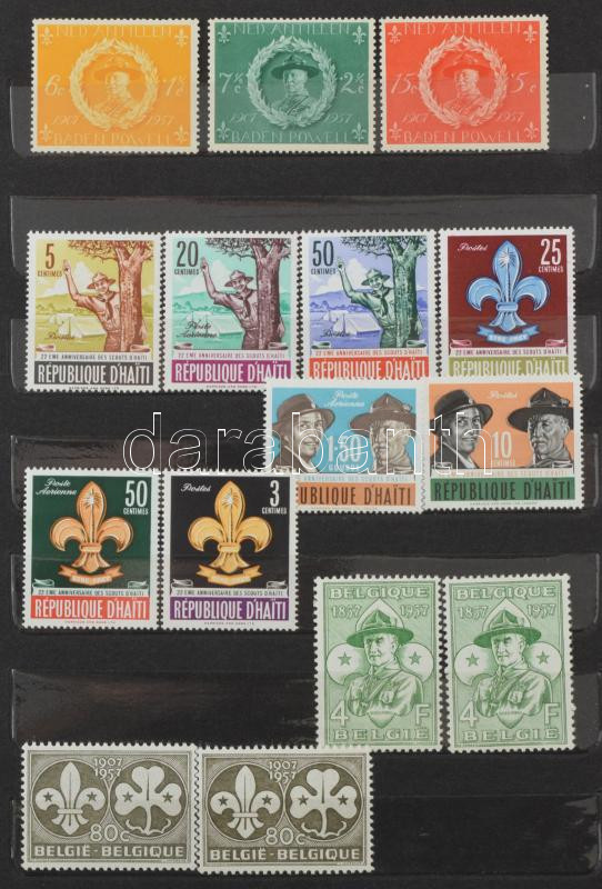 Leírás: Kis cserkész gyűjtemény 6 lapos közepes berakóban, jobbakkal
