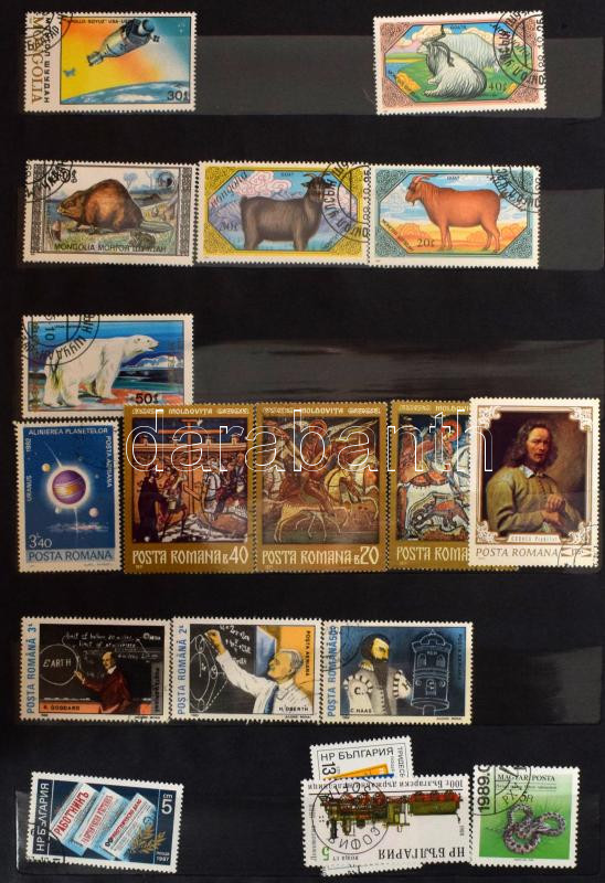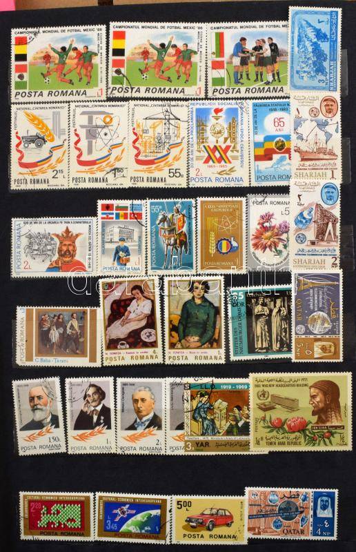 Romániából, a 70-80-as évekből származó kezdő gyermek amatőr gyűjtemény, rengeteg román és külföldi bélyeg sok rövid sorral, jól megrakott 3 db A/4 berakóban