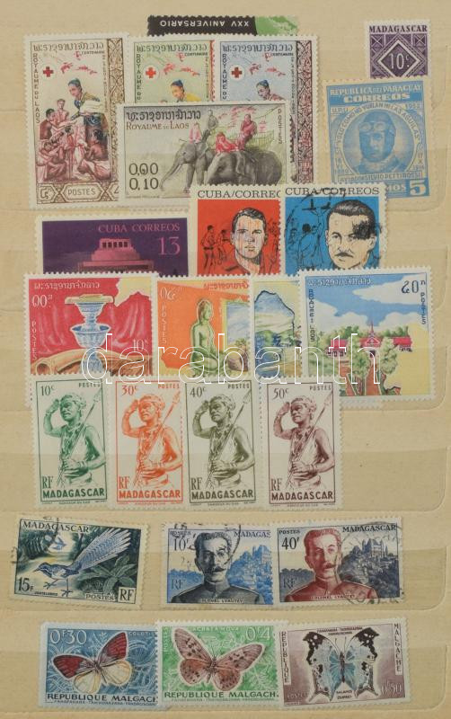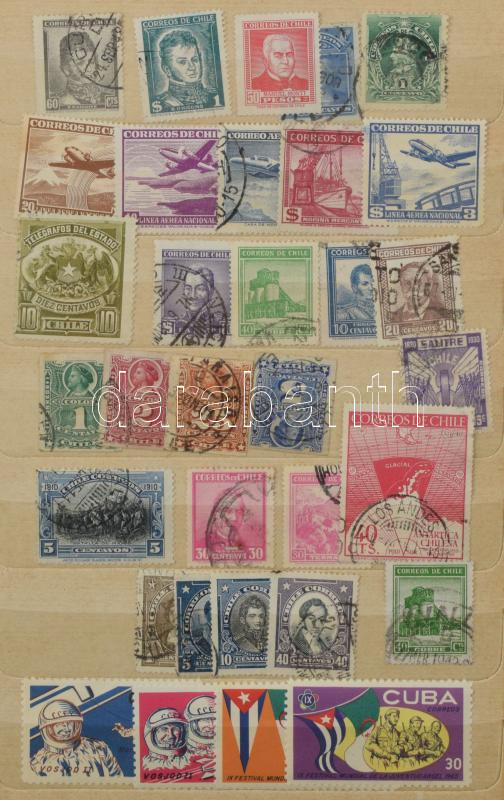 Leírás: Vegyes külföldi bélyegek, köztük sok tengerentúl, postatiszta román sorok, 8 lapos, közepes berakóban