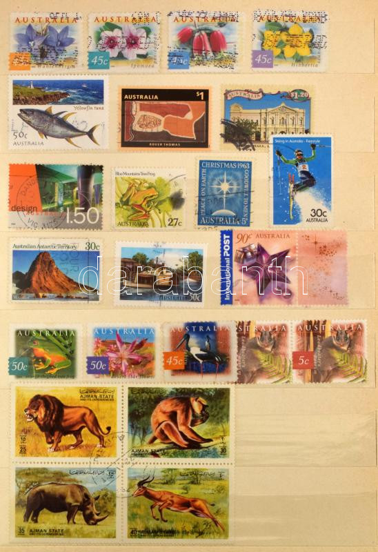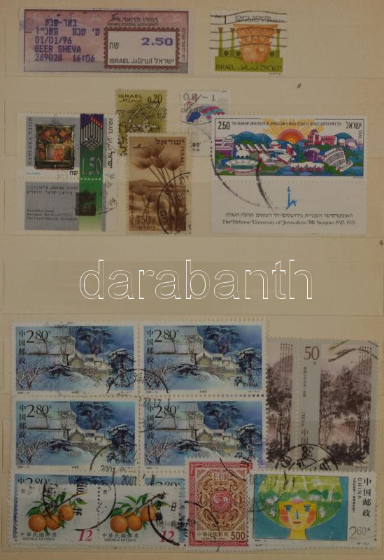 Leírás: Vegyes külföldi tétel az 1920-1990 közötti időszakból, benne több száz darab bélyeg, 4 db közepes berakóban