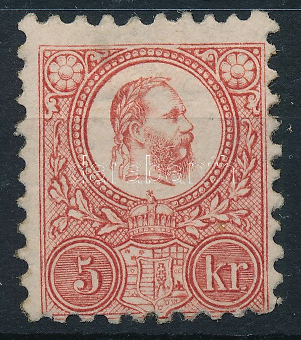 Leírás: 1874 Réznyomat 5kr (27.500) (kis elvékonyodás / thin paper)