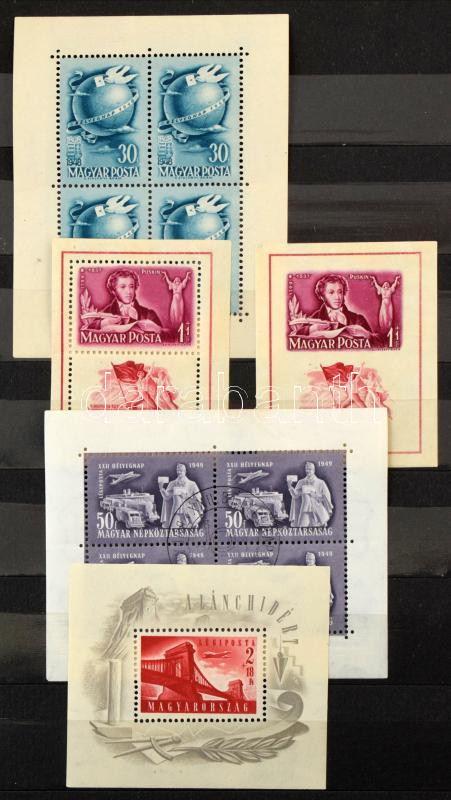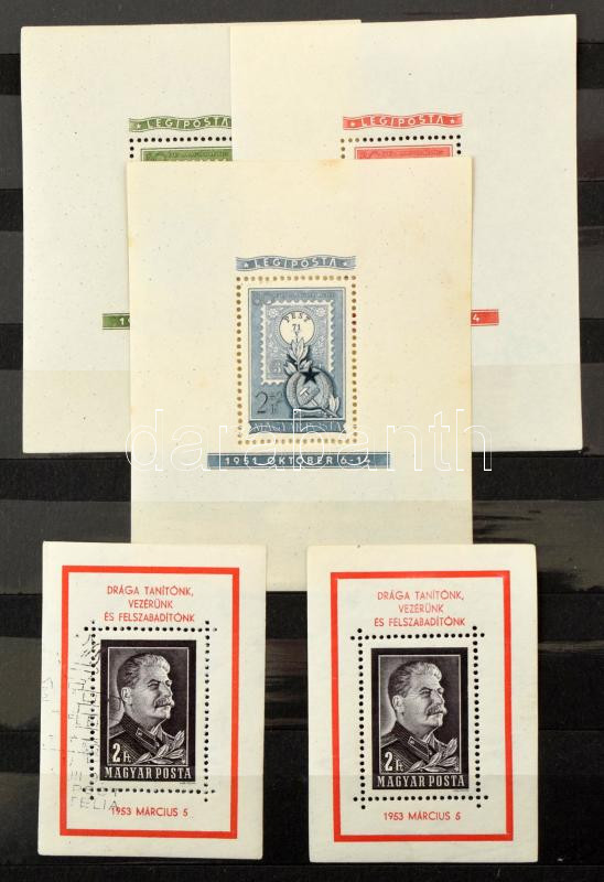 Blokk gyűjtemény közepes berakóban az 1938-1960 közötti időszakból, jobbakkal (Lánchíd, Roosevelt, 80 éves a bélyeg), másodpéldányokkal. Több blokk vegyes minőségben (rozsda, ráncok stb). A katalógusár több mint 100.000Ft! (mixed quality)