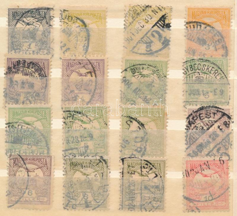 Leírás: 22 db Turul bélyeg szám- illetve csillagvízjellel, közte teljesek is