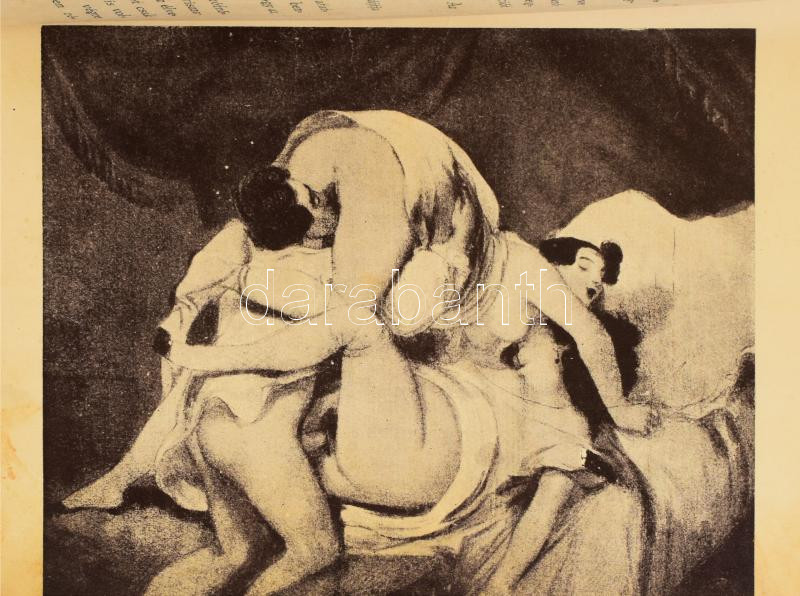Alfred de Musset: Gamiani vagy két kicsapongó éjszaka története. H.n., é.n. (cca 1930), magánkiadás, 59 p.+ 11 t. Egészoldalas, erotikus illusztrációkkal. Kiadói papÃrkötés, megviselt állapotban, sérült borÃtóval és gerinccel, helyenként sérült, foltos lapokkal.