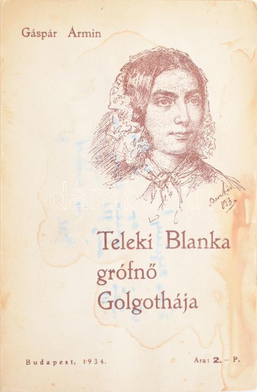 Leírás: Gáspár Ármin: Teleki Blanka grófnő golgothája. Bp., 1934, szerzői. Kiadói papírkötés, foltos borítóval, hiányzó címlappal.