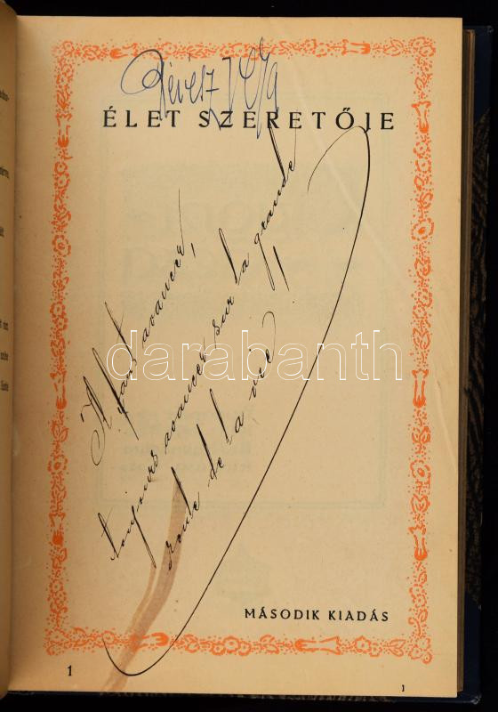 Leírás: Kolligátum: Kaffka Margit: Utólszor a lyrán Bp., é.n. Athenaeum. ; Gyóni Géza, Az élet szeretője (dedikált?), Kosztolányi Dezső: Mák 1920 Tevan. Félvászon kötésben