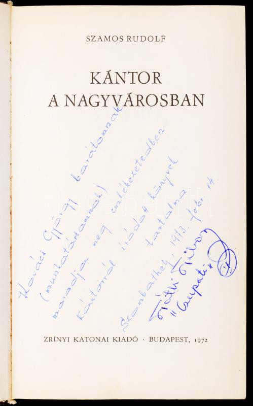 Szamos Rudolf: Kántor a nagyvárosban. Bp., 1972, Zrínyi. Tóth Tibor "Csupati" által DEDIKÁLT! A kötet különlegessége, hogy Kántor valódi gazdája, a könyvben szereplő, a filmsorozatban Madaras József által alakított Csupati, azaz Tóth Tibor dedikálta. Az alhadnagy jóval később, 2010-ben így világította meg a becenév keletkezését: "A könyv szerzője, Szamos Rudolf nevezett el Csupatinak, mert a nevemben sok a t betű. Ráadásul akkoriban rendőrnek nem lehetett a saját nevét felhasználni könyvben vagy a filmen, így Tóth helyett "Tóthi" lettem. Kántort is ezért kellett "Tyutyukámnak" hívnom. Először utáltam, hogy mindenki Csupatiként emlegetett, de megszoktam s elfogadtam."