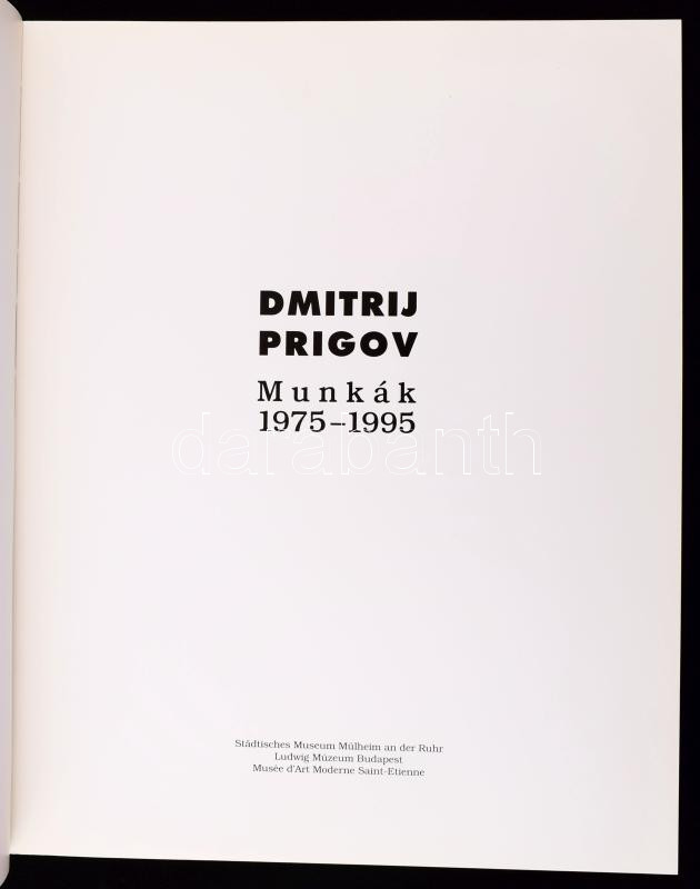 Dmitrij Prigov. Munkák 1975-1995. Mülhelm an der Ruhr - Bp. - Saint-Etienne,[1996.],Städtisches Museum - Ludwig Múzeum - Musée d'Art Moderne, 95 p. Gazdag képanyaggal illusztrált. Német, francia és magyar nyelven. Kiadói papírkötés, jó állapotban.
